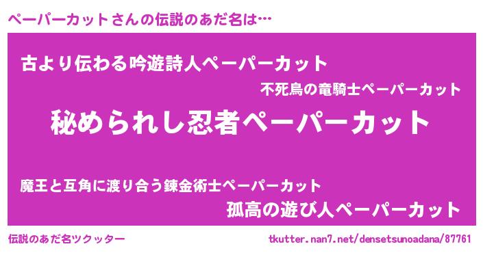| 意味不明あだ名 | 『自称ペーパーカット』 |