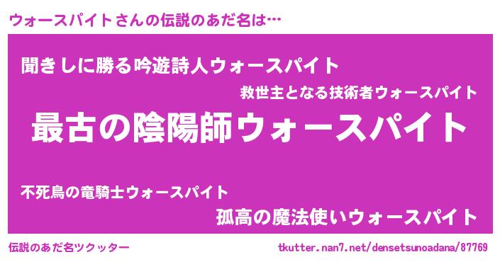 | ファンタジー風あだ名 | 『ゼウォトゥ』『ヴァルウォーナ』 |