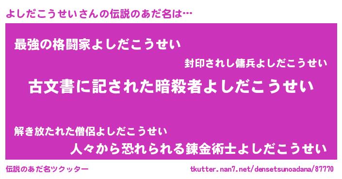 | ファンタジー風あだ名 | 『ヨシディッシュ』『ゼヨシトゥ』 |