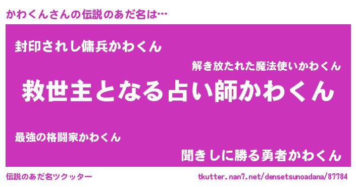 | ヘコむあだ名 | 『かわにゅー』『かわくん(小並感)』 |