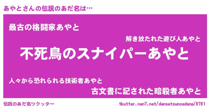 | ヒーロー風カッコイイあだ名 | 『スーパーアヤト』『仮面アヤダー』 |