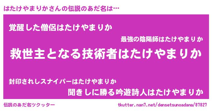 | ヒーロー風カッコイイあだ名 | 『天空の使者はたけやまりか』 |