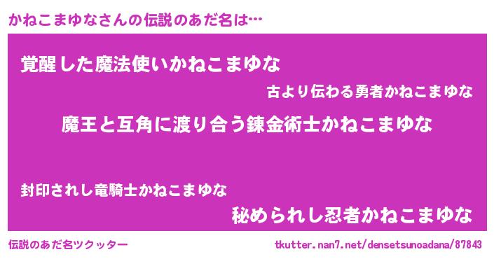 | 女子向けラノベタイトル風あだ名 | 『かねこまゆな恋絵巻』 |