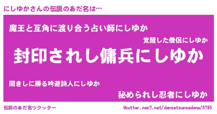 | ヒーロー風カッコイイあだ名 | 『スーパーニシユカ』『愛の使者にしゆか』 |