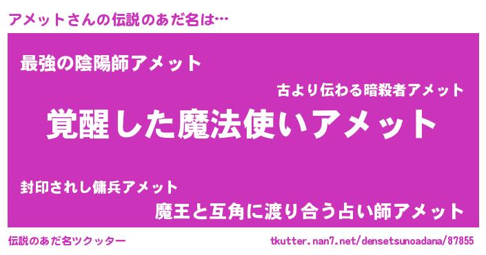 | 男性向けラノベタイトル風あだ名 | 『アメット~年齢イコール彼女いない歴の魔法使い~』 |