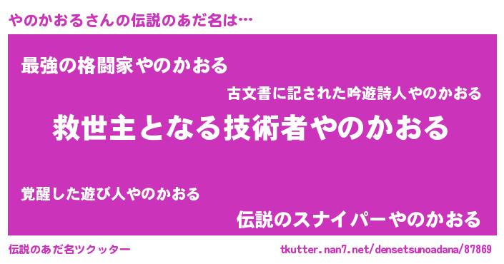 | 男性向けラノベタイトル風あだ名 | 『やのかおるに滅ぼされるだけの簡単なお仕事です』 |