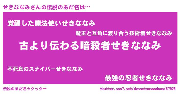 | 意味不明あだ名 | 『永久保存せきななみ』 |