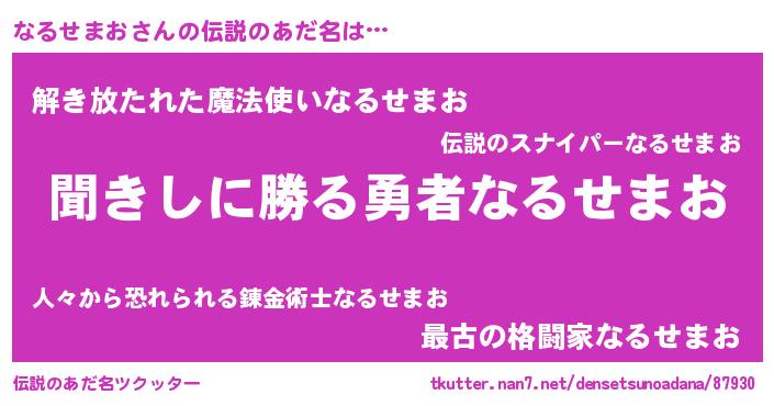 | 胡散臭い通販商品みたいなあだ名 | 『絶対に幸福をもたらす水素水…その名も「なるせまお」』 |