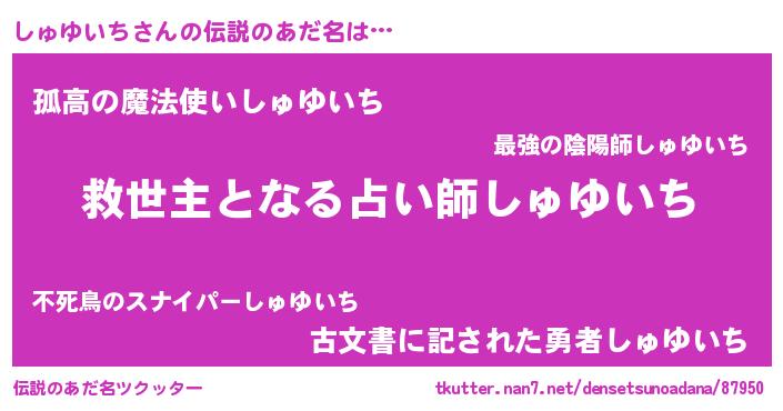 | 男性向けラノベタイトル風あだ名 | 『ノーゲーム・ノーシュユイチ』 |