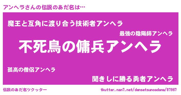 | ヘコむあだ名 | 『アンにゅー』『アンヘラ(笑)』 |