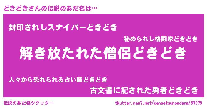 | ヒーロー風カッコイイあだ名 | 『魔戒騎士ドキ』『スーパードキドキ』 |