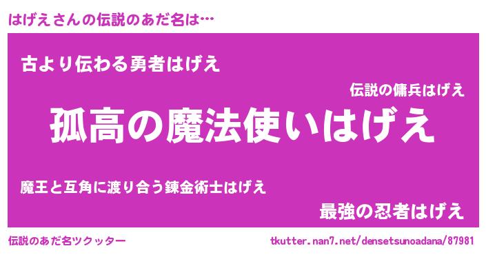 | 胡散臭い通販商品みたいなあだ名 | 『信頼と実績のサプリメント…その名も「はげえ」』 |