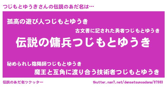 | ヒーロー風カッコイイあだ名 | 『スーパーツジモトユウキ』 |