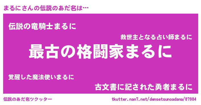 | 意味不明あだ名 | 『まるにフォーエバー』『自称まるに』 |