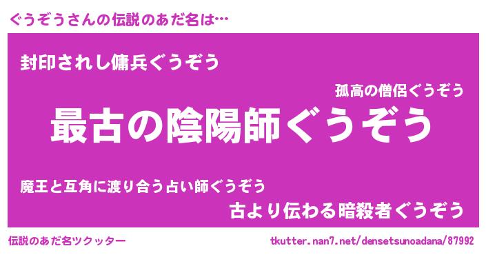 | ファンタジー風あだ名 | 『エターナルグウゾウー』『ゼグウトゥ』 |