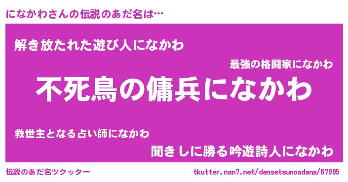 | 男性向けラノベタイトル風あだ名 | 『ニナカワアートオンライン』 |