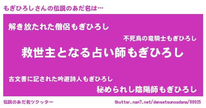 | ヒーロー風カッコイイあだ名 | 『天空の使者もぎひろし』『魔戒騎士モギ』 |