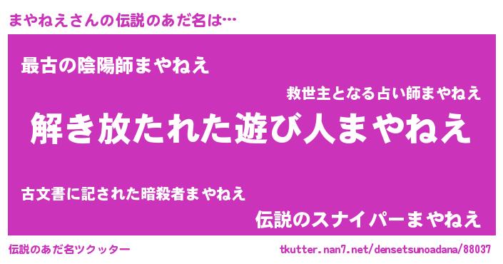 | ヒーロー風カッコイイあだ名 | 『幻影騎士マヤ』『ウルトラまやねえマン』 |
