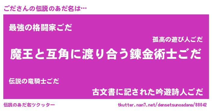 | 胡散臭い通販商品みたいなあだ名 | 『世界中を虜にした世界で10本だけ現存している希少なブランデー…その名も「ごだ」』 |
