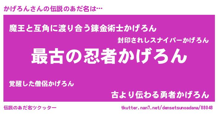 | ファンタジー風あだ名 | 『ゼカゲトゥ』『エターナルカゲロンー』 |
