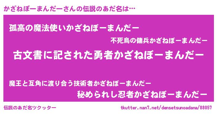 | 意味不明あだ名 | 『永久保存かざねぼーまんだー』 |