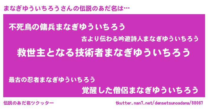 | 男性向けラノベタイトル風あだ名 | 『ノーゲーム・ノーマナギユウイチロウ』 |