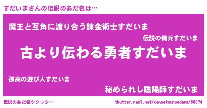 | 男性向けラノベタイトル風あだ名 | 『すだいまという概念が存在しない退屈な世界 』 |