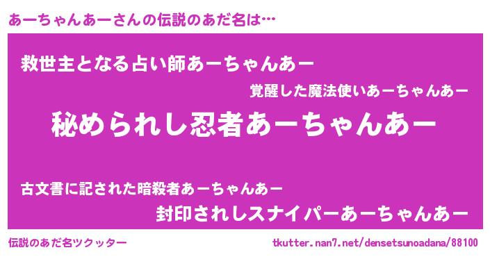 | 意味不明あだ名 | 『あーちゃんあーフォーエバー』 |