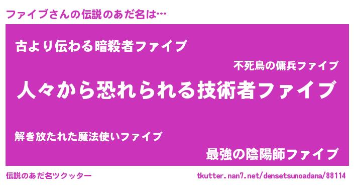 | 胡散臭い通販商品みたいなあだ名 | 『ガンによく効く高麗人参…その名も「ファイブ」』 |