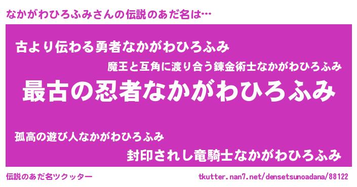 | 意味不明あだ名 | 『住所不定無職なかがわひろふみ(53歳)』 |