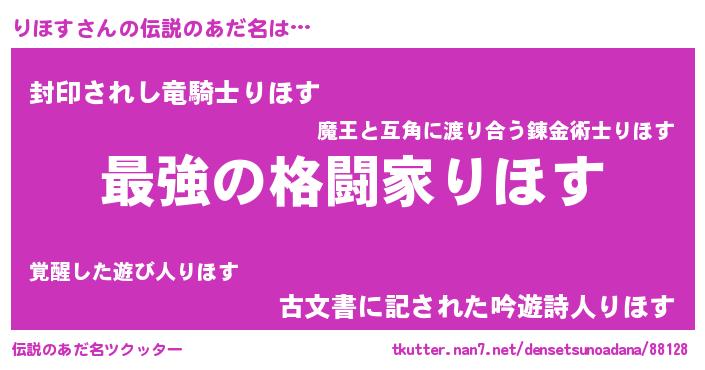 | ヒーロー風カッコイイあだ名 | 『仮面リホダー』『ウルトラりほすマン』 |