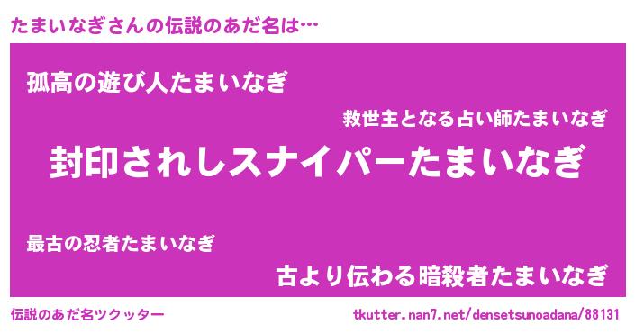 | ヒーロー風カッコイイあだ名 | 『仮面タマダー』『スーパータマイナギ』 |