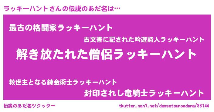| ポケモン風あだ名 | 『ヒラッキーハント』『ラッキング』 |