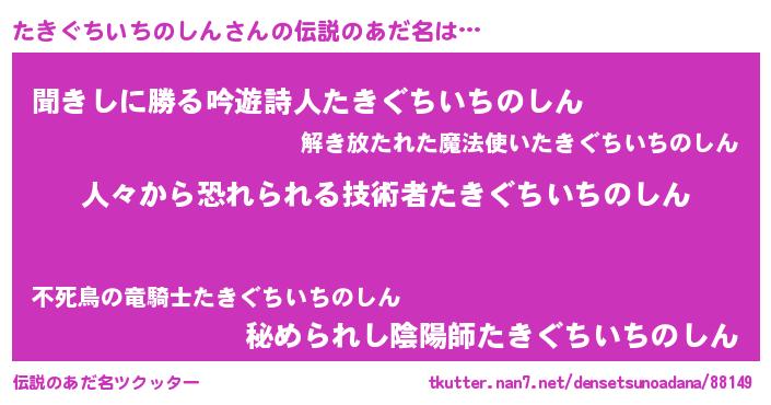| 肩書あだ名 | 『たきぐちいちのしん閣下』 |