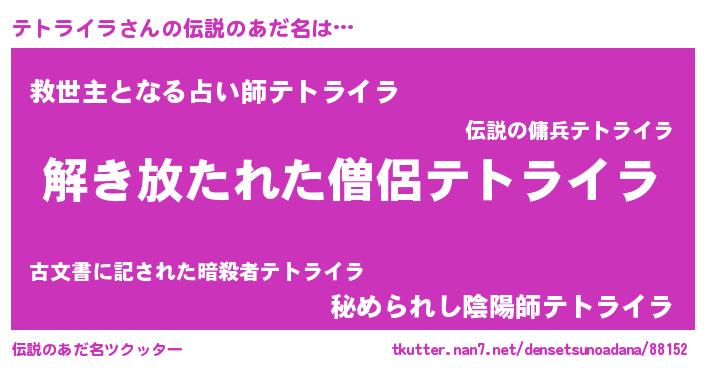 | 男性向けラノベタイトル風あだ名 | 『ダンジョンにテトライラを求めるのは間違っているだろうか』 |