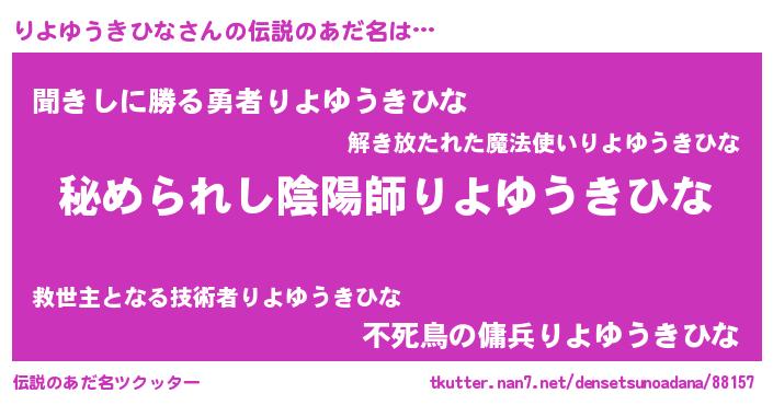 | 意味不明あだ名 | 『自称りよゆうきひな』 |