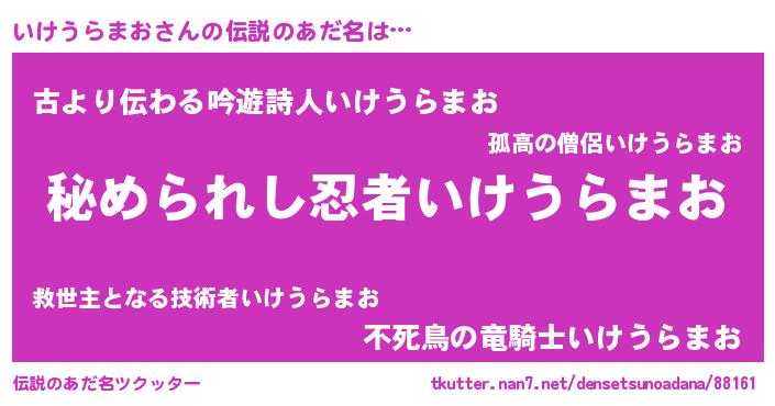 | 意味不明あだ名 | 『自称いけうらまお』 |