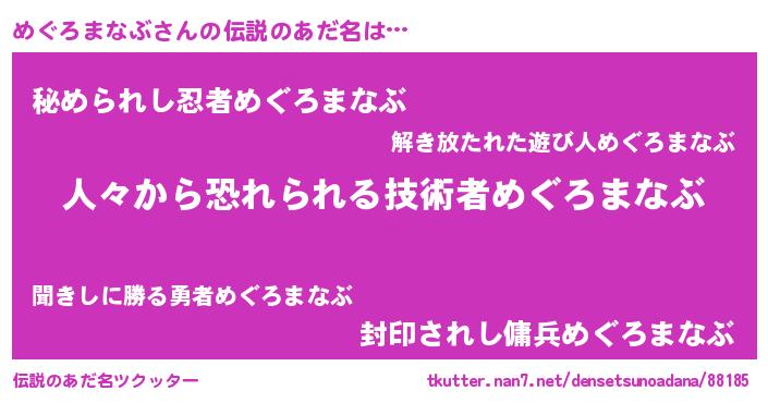 | 料理風あだ名 | 『めぐろまなぶのカルパッチョ風』 |