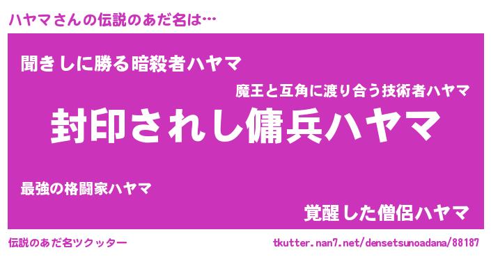 | ファンタジー風あだ名 | 『ハヤフェル』『ハヤディッシュ』 |