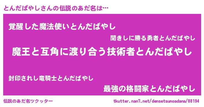 | ヒーロー風カッコイイあだ名 | 『愛の使者とんだばやし』『炎刃騎士トン』 |