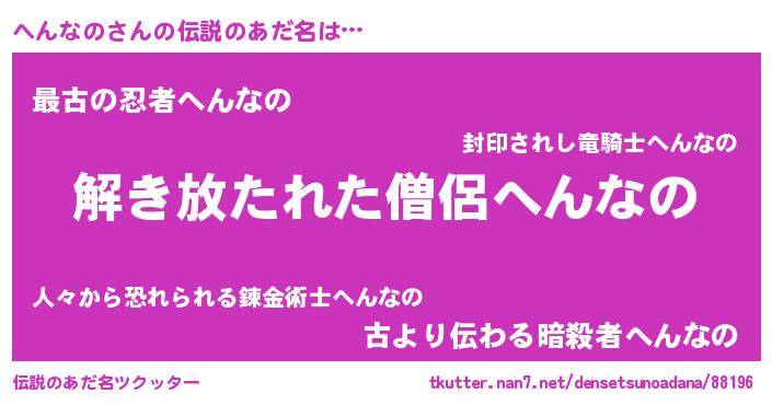 | ヒーロー風カッコイイあだ名 | 『幻影騎士ヘン』『ウルトラへんなのマン』 |