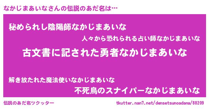 | ヘコむあだ名 | 『なかじまあいな(遠い目)』『酢こんぶ』 |
