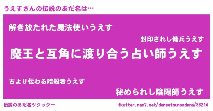 | 意味不明あだ名 | 『住所不定無職うえす(53歳)』『自称うえす』 |