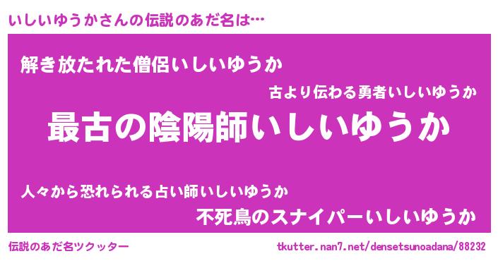 | ヒーロー風カッコイイあだ名 | 『ウルトラいしいゆうかマン』 |