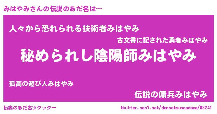 | 意味不明あだ名 | 『みはやみフォーエバー』 |