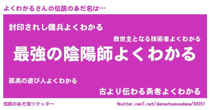 | ファンタジー風あだ名 | 『エターナルヨクワカルー』『ヨクフェル』 |