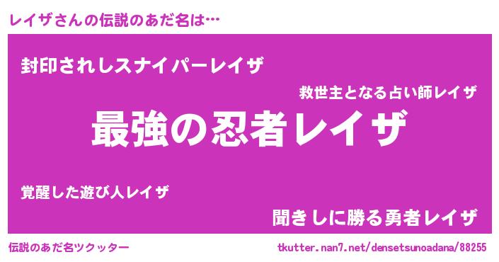 | 恥ずかしいあだ名 | 『レイっちょ』『プリティーレイザ』 |