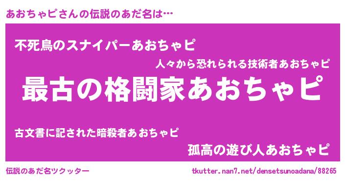 | 意味不明あだ名 | 『住所不定無職あおちゃピ(5歳)』 |