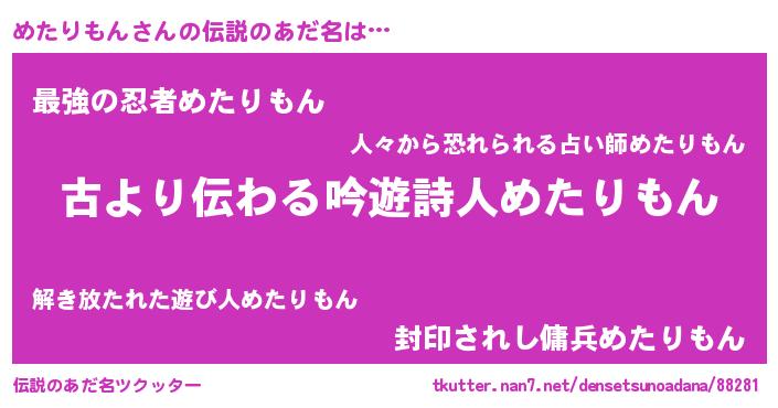 | 意味不明あだ名 | 『永久保存めたりもん』『自称めたりもん』 |