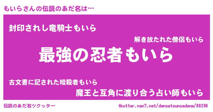 | 肩書あだ名 | 『もいら中尉』『もいら大統領』 |